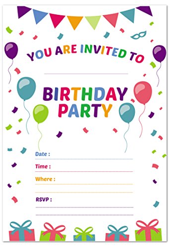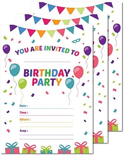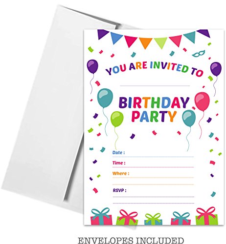 25 Happy Birthday invitations on high quality 5 inch by 7 inch matte card stock with envelopes. High quality print displays a fun design with area for name personalization. Includes areas for date, time, location and RSVP details. Includes white fitted envelopes. Postcard style. Made in the USA. Includes bright white, gum moistened envelopes (24lbs). Unicorn approved.25 Happy Birthday invitations on high quality 5 inch by 7 inch matte card stock with envelopes