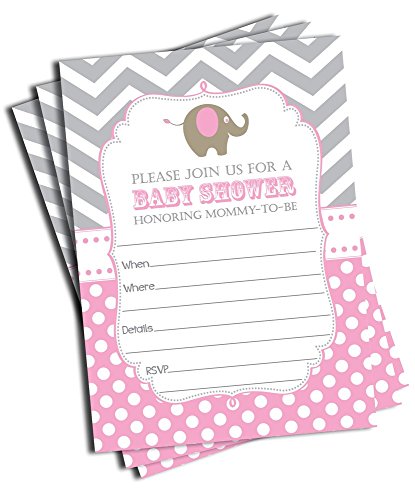 Fill-in-the-blank invitations. Cards measure 5X7 inches. Pack of 50 Cards and 50 Envelopes. Coordinating supplies available.50 Fill-in-the-blank Invitations and 50 Envelopes - Elephant - Pink