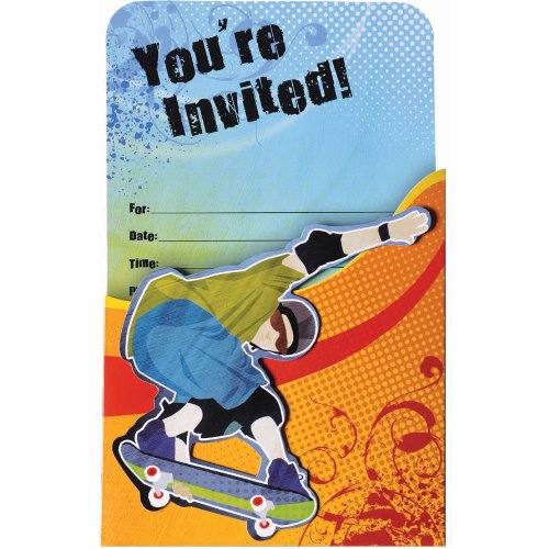 Calling all skaters! Use our Born to Skate Novelty Invites to let all your friends and family know about your off the hook party! These invitations feature an orange printed card stock sleeve with a skater printed on the front, a blue "You're Invited!" party information card is in each sleeve. Measures 4.5" x 6". Includes 8 sleeves, 8 party information cards, and 8 envelopes per package.8 per package