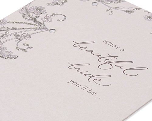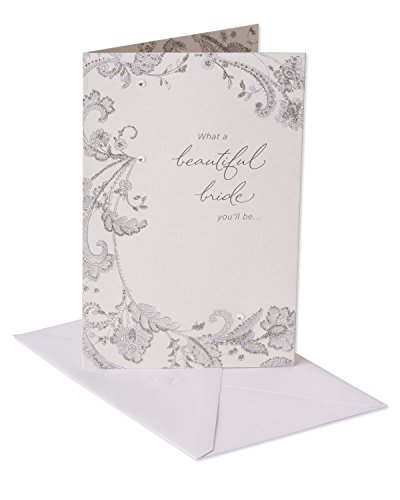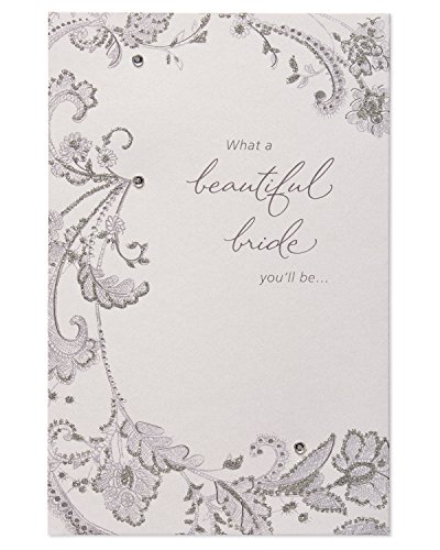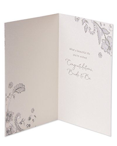 Celebrate the bride-to-be with an exquisitely designed Greeting card! this bridal shower Greeting card features a lacey floral pattern with shimmering silver foil accents, sparkling silver glitter and shiny rhinestone attachments on pearlescent paper. The dazzling embellishments continue inside the card to wow her even more. Perfect for bridal shower, engagement and bachelorette party congrats!Inside message: what a beautiful life you're wished. Congratulations, bride-to-be
