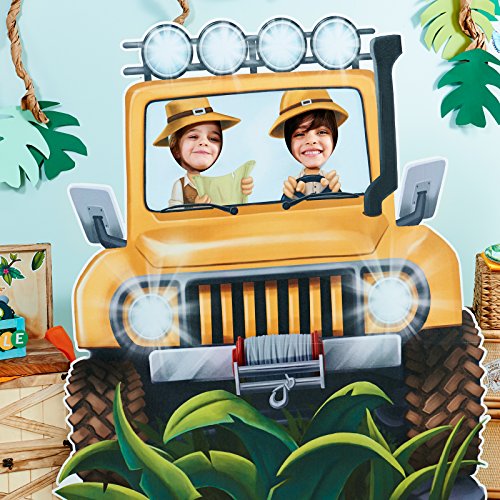 Jungle Party Jeep Standee Party Prop measures 4.5' tall. Easy assembly.Includes (1) standup photo prop. Made of cardboard and measures 4.5' tin height. Adult assembly required.