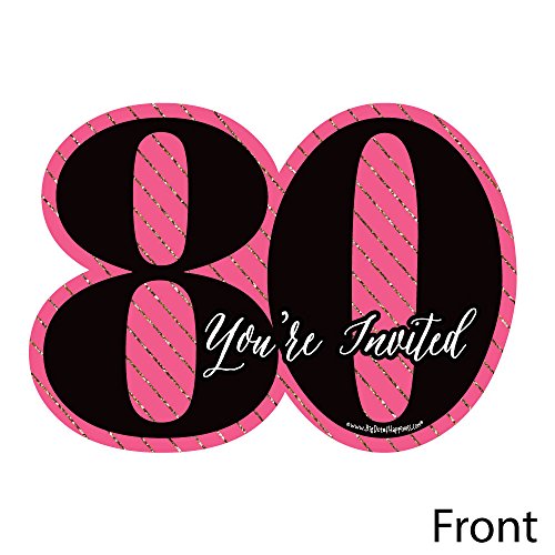 MADE IN THE USA: Chic 80th Birthday - Pink, Black and Gold - Birthday Party Shaped Invitations are designed and manufactured at our Wisconsin facility using materials that are Made in the USA. Chic 80th Birthday Fill-In Invitations use a No-Mess Glitter Print: Our invitations are designed with a printed image of glitter, eliminating glitter flake while maximizing bling effect!