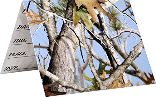 Light blue camo party theme. Real looking tree camo on a light blue background printed on folded paper invitations. Box of 96 printed paper invites. Look for the entire line of light blue camo decorations.Camo Light Blue Color Pattern