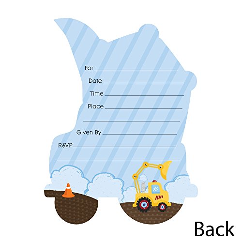 PREMIUM PARTY INVITATIONS: Construction zone party invitation are professionally printed on heavy-duty card stock paper with a photo-like shine. They are individually inspected, then carefully packaged with our exclusive squiggle flap envelopes, making this Construction Truck stationary set a must-have for any baby shower or birthday party.