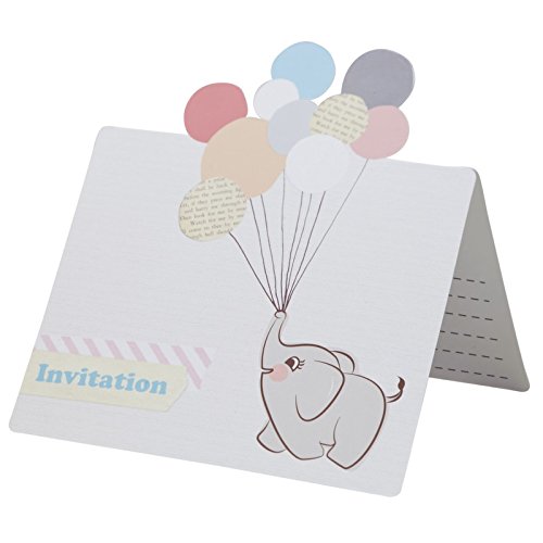 Set of 20 elephant baby shower invitations. Perfect for baby showers, baptism, christening or first birthday too. 6.25" tall. Works for baby shower boy party or baby shower girl. Coordinating paper plates, paper cups and paper napkins are available to complete your baby shower decorations.Elephant baby shower invitations