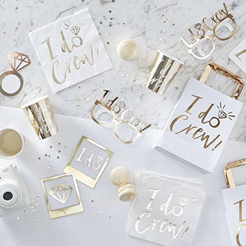 Make sure everyone feels part of the crew with our gold foiled 'I Do Crew' Sash! The hens will adore wearing these and brings an extra special touch to a fun celebration. The gorgeous gold foiling is a stylish finish and goes with any theme. The hens can even take them home for a special keepsake. The paper sash is sophisticated and trendy - with a gold ribbon that threads through to tie up. The hens will never want to take them off! One size fits all. Each pack contains 6 sash's measuring 75cm (L) when being worn and 10cm (W).I do crew white & golden hen party sash