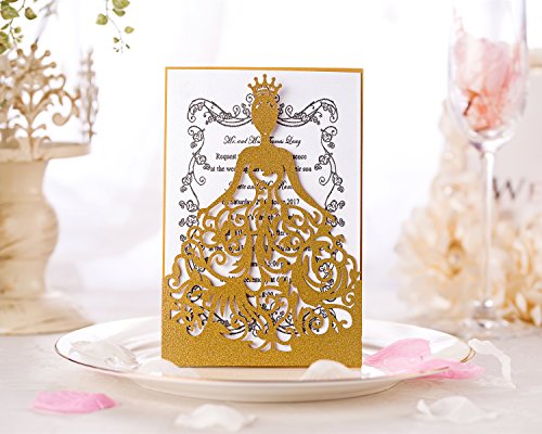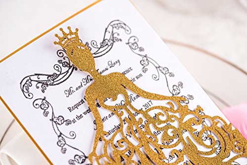 ♕MATERIAL: We KAZIPA Invitations are made of high quality Paper Board, you will feel thicker and better when you receive it. Different from others, more higher grade. Hollow Bride design adds more elegance in it. Newest and Pink design will catch girl's first eye.