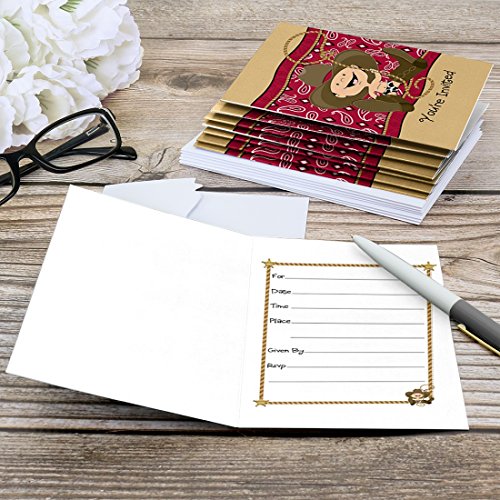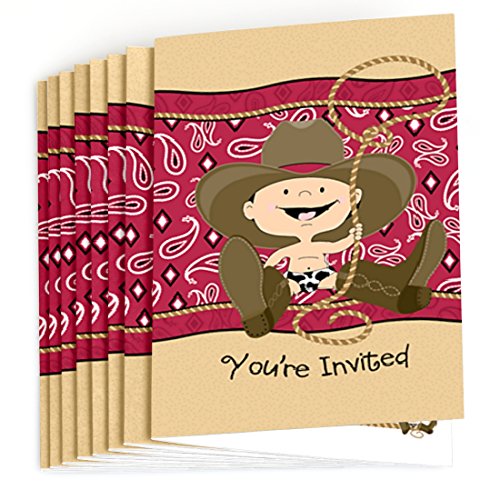 PREMIUM PARTY INVITATIONS: Little Cowboy - Western baby shower or birthday party invitations are professionally printed on heavy-duty card stock paper with a photo-like shine. They are then hand-folded and individually inspected, then carefully packaged with our exclusive squiggle flap envelopes, making this cowboy themed stationary set a must-have for a baby shower, birthday party.