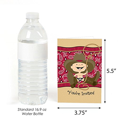 Little Cowboy - Western baby shower or birthday party invitations SIZE 5.5 inches by 3.75 inches, folded. The included envelopes measure 5.75 inches by 3.75 inches.