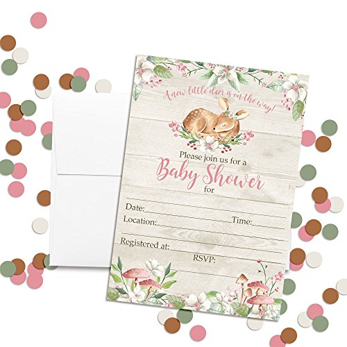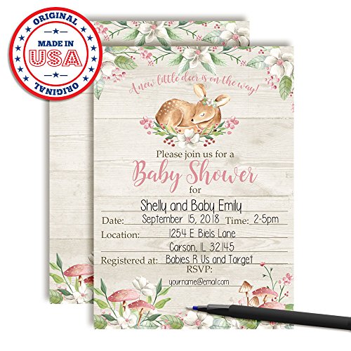 *** Bigger... Better... and Best of All... Cuter. Presenting Little Deer Woodland Watercolor Floral Baby Shower Invitations for Girls Designed by a Mom for Moms. Set of 20 Fill-In Postcards (5"x7" Each) Comes with 20 White Envelopes ***