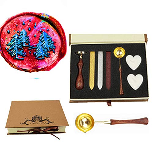 Package Includes: 1x Vintage Hard Paper Gift Book Box; 1xStamp(Rosewood handle&copper head), 1x Wooden handle Melting Spoon,3x Wax Sticks(Silver&Red&Gold),2x Heart shaped White Candles. The elegant wooden handle melting spoon can prevent your fingers from been burned! It's great to stamp the old-fashioned design on your wedding invitations or gift cards! Creative gifts for your friend or just for collection!