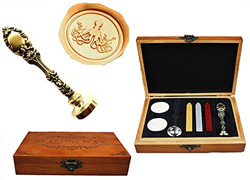 Package Includes: 1x Wood Gift Box; 1xStamp(Metal Handle & Head), 1x Melting Spoon,3x Wax Stick(Silver&Red&Gold),2x White Candles; Wood Gift Box packaging design, makes it looks like an old mysterious book. Creative gifts for your friend or just for collection!
