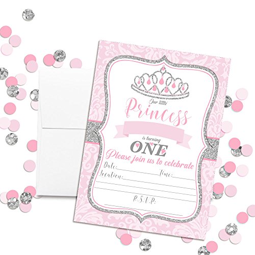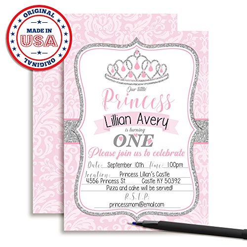 *** Bigger... Better... and Best of All... Cuter. Presenting Pink and Silver Damask Princess Birthday Party Invitations for Girls Designed by a Mom for Moms. Set of 20 Fill-In Postcards (5"x7" Each) Comes with 20 White Envelopes ***