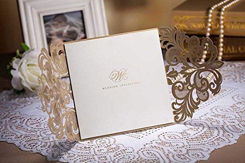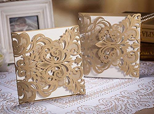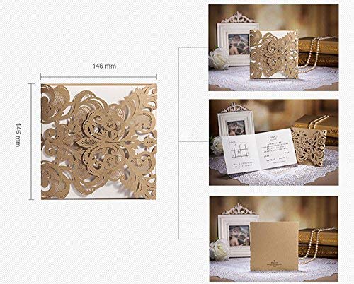 INVITATIONS SIZE: This wedding invitation pocket is 5.91 by 5.91 inch (146mm*146mm),2 folds inner sheet is 11.42 by 5.71 inch (145mm*290mm).Both are made of recycled thick card stock paper