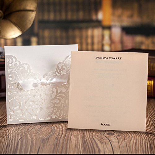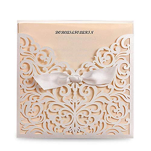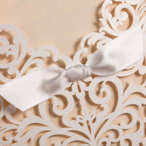 COLOR: pearlized invitation pocket, laser cut card wrap with great attention to details, with beige BLANK insert, white envelope(inadhesive) with adhesive seal stickers. The laser cut technology gives better exquisite lace sleeve than the traditional die cut card invitations.