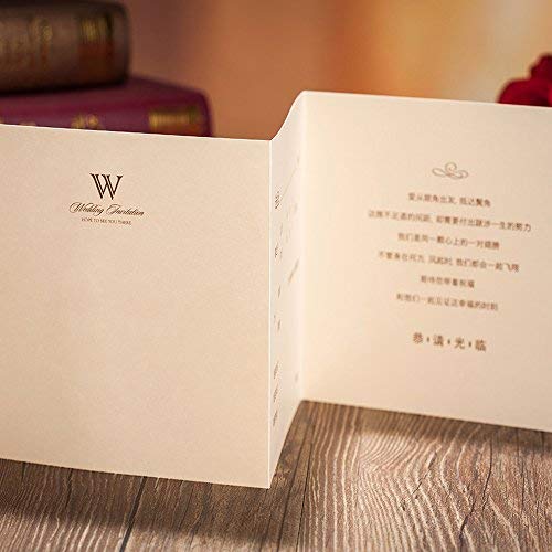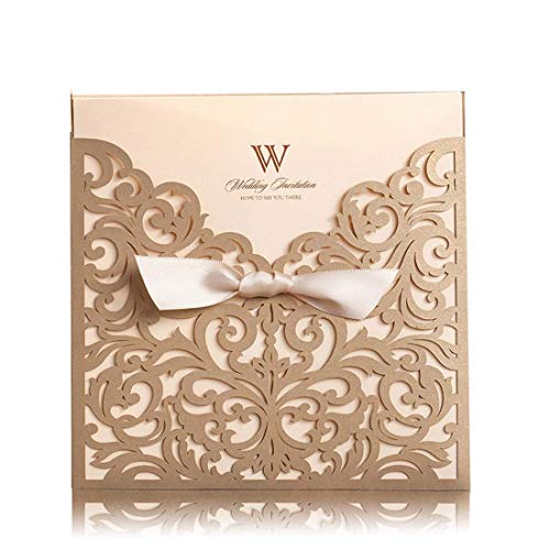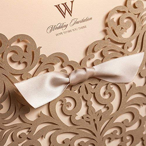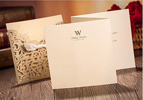 COLOR: laser cut gold invitation pocket,hollow lace and ribbon with great attention to details, with beige BLANK insert, white envelope(inadhesive) with adhesive seal stickers. The laser cut technology gives better exquisite lace sleeve than the traditional die cut card invitations.