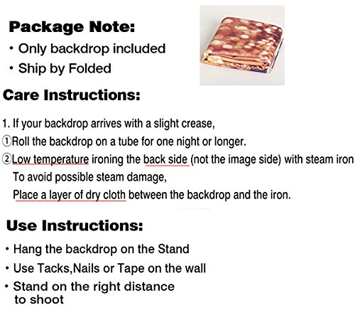 【Warm tips】:Only Backdrop included;Item will be sent by folded. Roll it on a tube for one night or longer to remove crease.If necessary, please iron the back side (not the image side) with low tempertrue to easily remove the wrinkle.To avoid possible steam damage, place a layer of dry cloth between the backdrop and the iron.