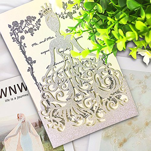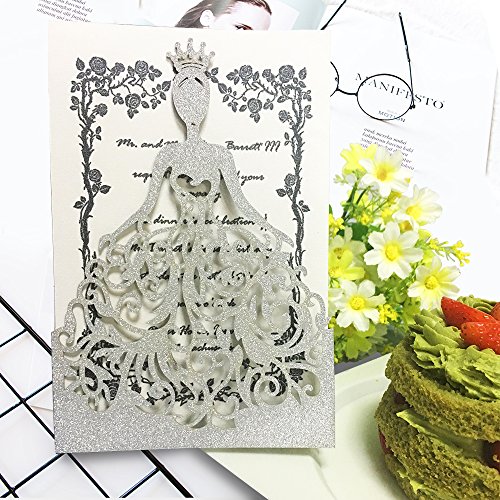 ♕MATERIAL: We KAZIPA Invitations are made of high quality Paper Board, you will feel thicker and better when you receive it. Different from others, more higher grade. Hollow Bride design adds more elegance in it. Newest and Pink design will catch girl's first eye.